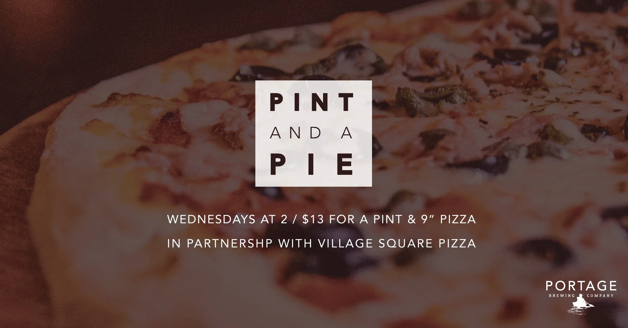 Nothing better than a great pan of pizza and fresh beer. Join us on Wednesdays from 2-8PM for Pint + A Pie, where you can enjoy a pint of Portage Beer, 9" single topping pizza from Village Square Pizza - and all for just $13. Hope to see you for a slice.